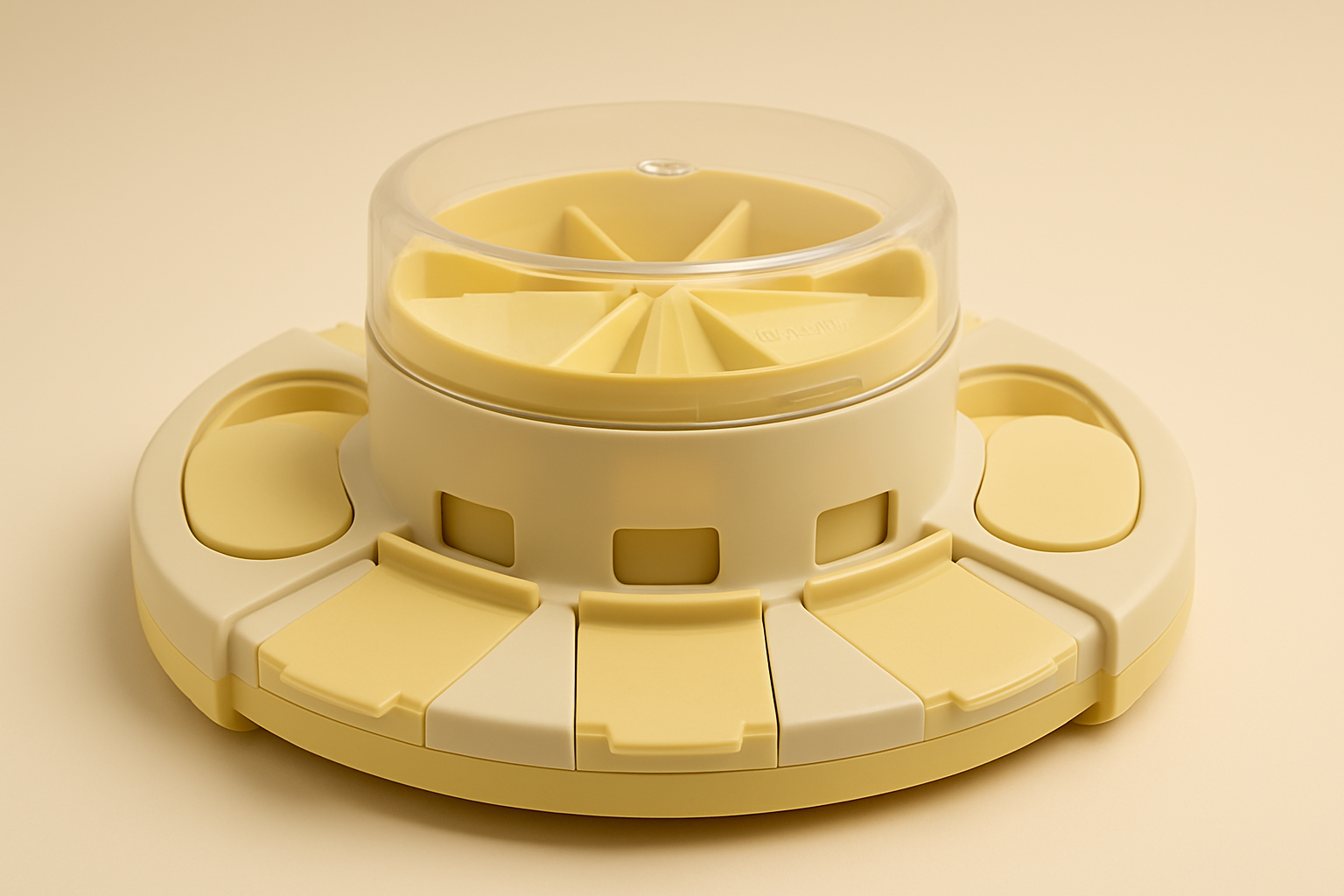 A press-to-release slow feeder designed to turn mealtime into calm, focused enrichment.